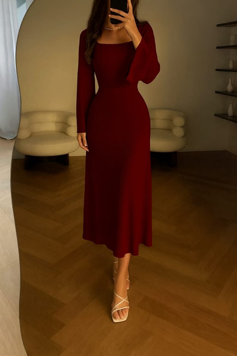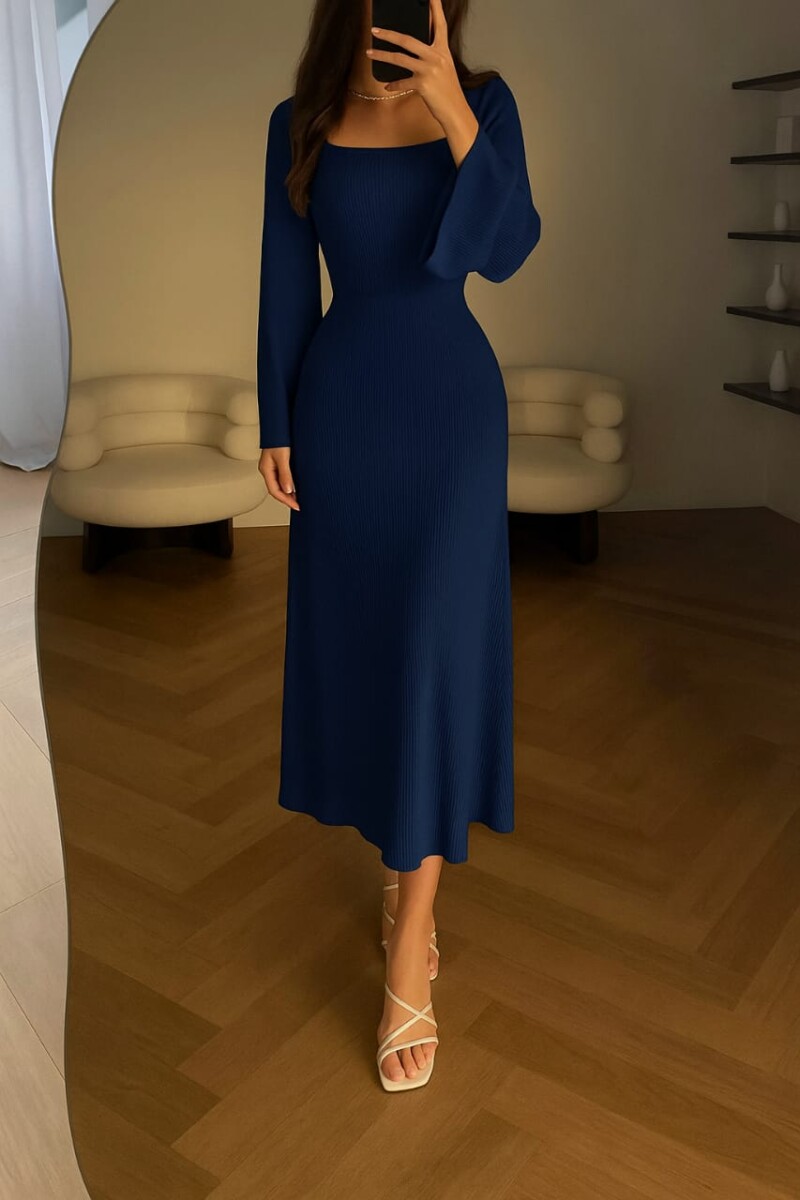 SKU: crew-neck-long-dress-elegant-long-sleeve-ribbed-bodycon Category: