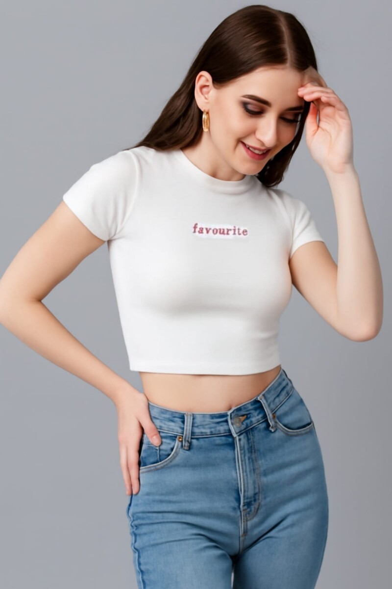 White Crop Top with ‘Favourite’ Embroidery
